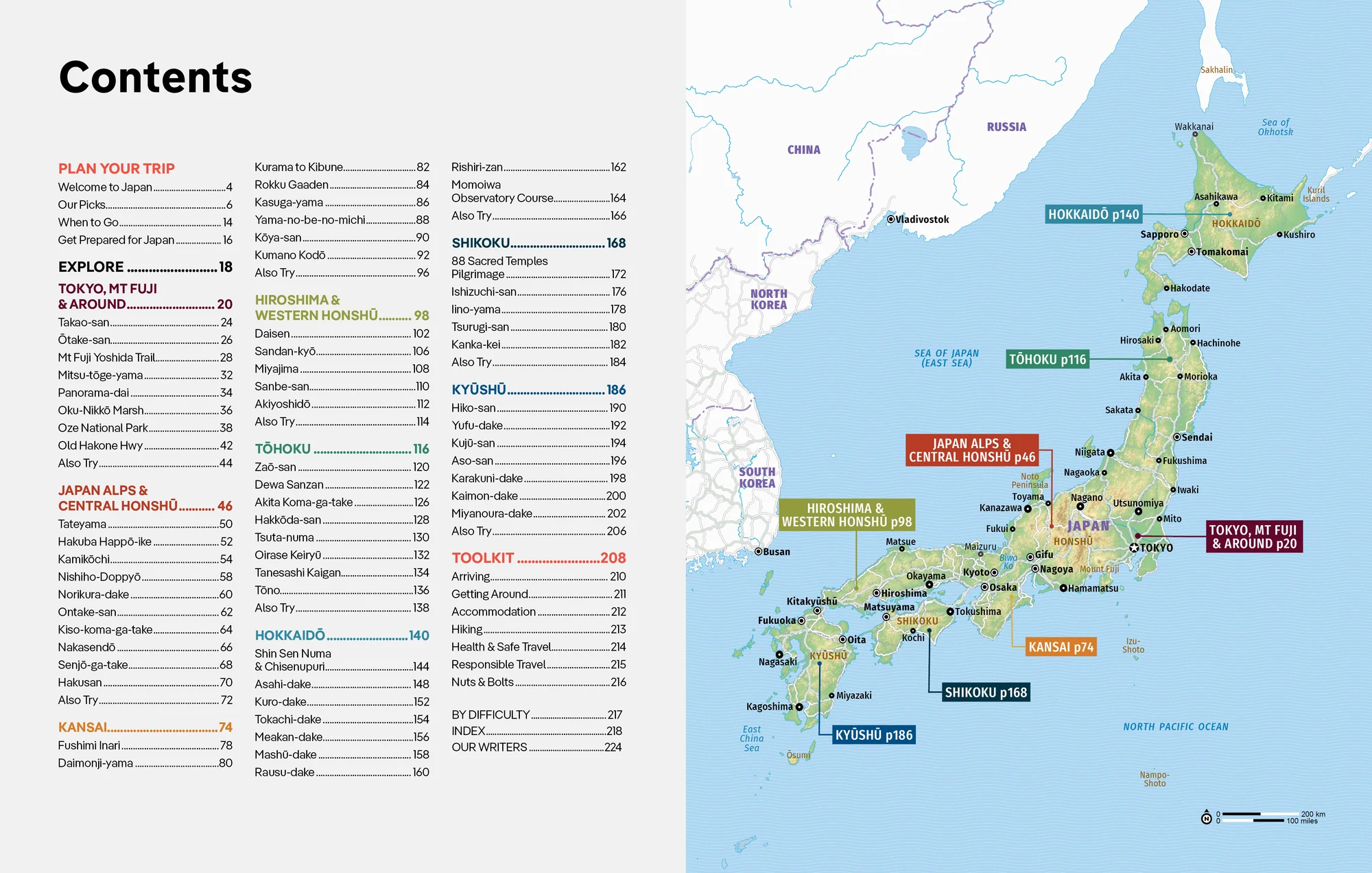 Tokyo, Mt Fuji and Around, Japan Alps and Central Honshu, Kansai, Hiroshima and Western Honshu, Tohoku, Hokkaido, Shikoku, Kyushu
